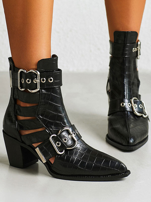 Stivali da donna caviglia fibbia nera puntata con bottini tacchi a blocchi di punta & Scarpe > Scarpe Donna > Stivali > Stivaletti