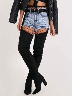 Stivali da donna con cintura alta e tacco grosso in finta pelle scamosciata nera & Scarpe > Scarpe Donna > Stivali > Stivali sopra il Ginocchio