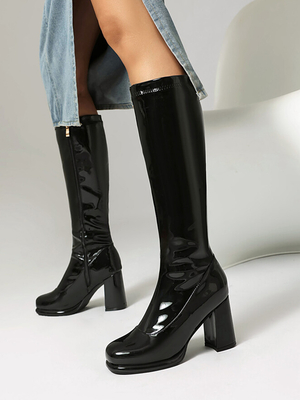 Stivali da donna in pelle PU con punta tonda e tacco spesso a metà polpaccio & Scarpe > Scarpe Donna > Stivali > Stivali per polpacci
