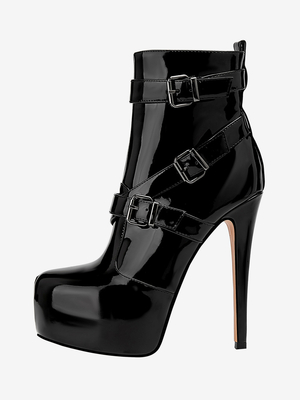 Stivali da donna neri sexy con plateau punta affilata dettaglio fibbia alla caviglia & Scarpe > Scarpe per Occasioni > Scarpe Sexy > Stivali sexy & Stivali balletto