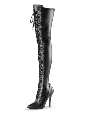 Stivali da donna sexy con tacco alto e punta tonda con tacco svasato e stivali alti alla coscia neri taglia grande & Scarpe > Scarpe Donna > Stivali > Stivaletti ...