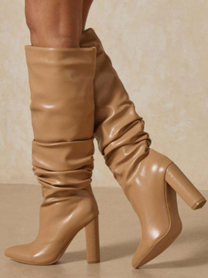 Stivali da Donna Stivale Sopra al Ginocchio in Pelle PU Scarpe a Punta con Tacco Spesso Stivali per polpacci Stivali Lunghi Pieghettati & Scarpe > Scarpe Donna > Stivali > Stivali al ginocchio