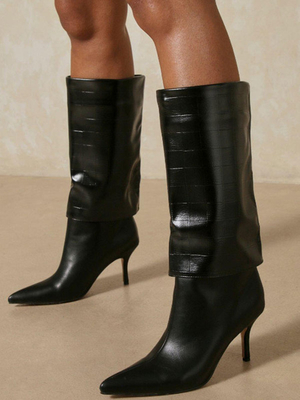 Stivali da donna Stivali a metà polpaccio neri in pelle PU con tacco a spillo e punta a spillo & Scarpe > Scarpe Donna > Stivali > Stivali per polpacci
