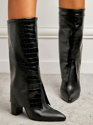 Stivali da donna Stivali a metà polpaccio neri in pelle PU con tacco grosso e punta a punta & Scarpe > Scarpe Donna > Stivali > Stivali per polpacci