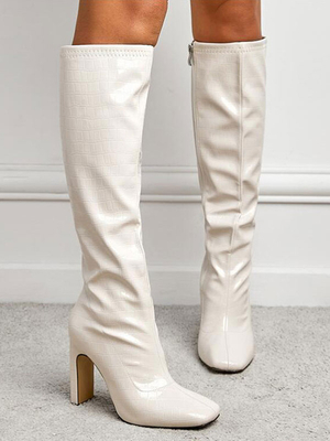 Stivali da donna Stivali bianchi in pelle PU con tacco largo e punta quadrata & Scarpe > Scarpe Donna > Stivali > Stivali al ginocchio