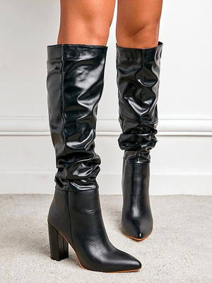 PU Stivali A Punta E Tacco Grosso Stivali Sexy