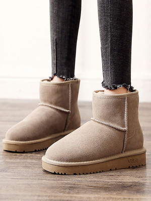 Stivali da neve da donna Stivali invernali piatti in pelle scamosciata con punta tonda & Scarpe > Scarpe Donna > Stivali > Stivaletti