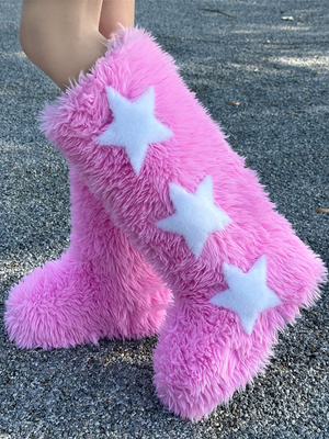 Stivali Da Neve Invernali Con Punta Rotonda E Stampa A Stelle In Lana