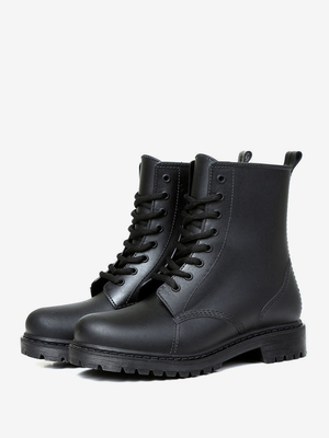 Stivali da pioggia da donna neri con punta tonda allacciati impermeabili alla caviglia & Scarpe > Trendy > Stivali da pioggia
