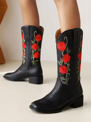 Stivali da vitello a mezz'eccomodo da donna in pelle puntata stivali da cowboy cuccioli stivali tallone cucciolo & Scarpe > Scarpe Donna > Stivali > Stivali per polpacci ...