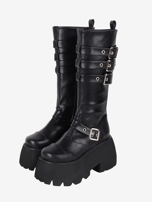 Stivali Gothic Lolita Occhielli Neri Punta Rotonda Metallica in Pelle PU Calzature Lolita & Vestiti Lolita > Scarpe Lolita > Stivali Lolita