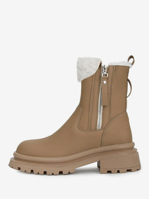 Stivali invernali da donna Stivaletti corti in peluche con cerniera kaki e punta tonda & Scarpe > Scarpe Donna > Stivali > Stivaletti