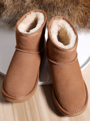 Stivali invernali da donna Stivali da neve piatti in pelle scamosciata con punta tonda & Scarpe > Scarpe Donna > Stivali > Stivaletti