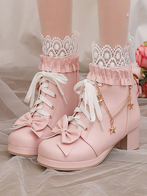 Stivali Lolita dolci in pelle PU con fiocchi punta rotonda calzature Lolita rosa & Vestiti Lolita > Scarpe Lolita
