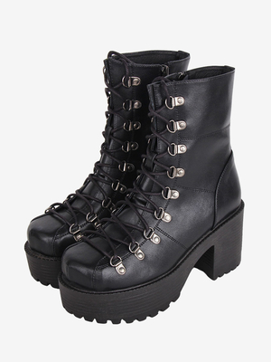 Stivali Lolita gotici Calzature Lolita in pelle PU nera con punta tonda & Vestiti Lolita > Scarpe Lolita