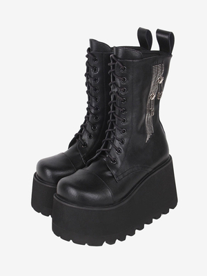 Stivali Lolita gotici Calzature Lolita in pelle PU nera con punta tonda & Vestiti Lolita > Scarpe Lolita