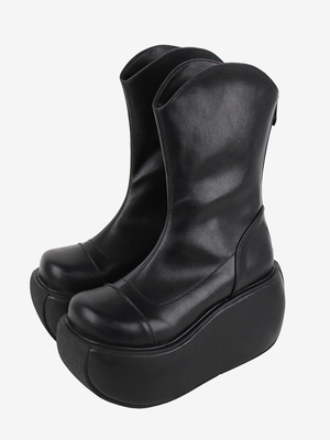 Stivali Lolita gotici Calzature Lolita in pelle PU nera con punta tonda & Vestiti Lolita > Scarpe Lolita