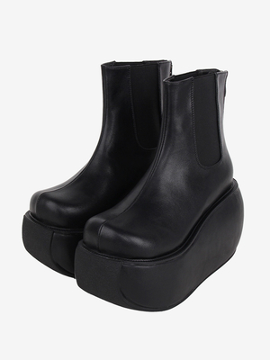 Stivali Lolita gotici Calzature Lolita in pelle PU nera con punta tonda & Vestiti Lolita > Scarpe Lolita