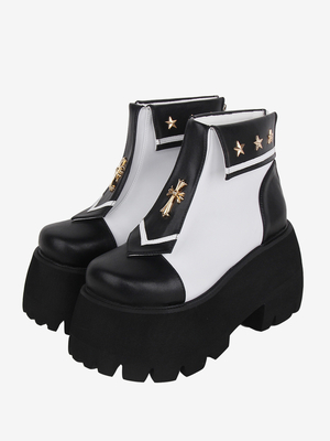 Stivali Lolita gotici Occhielli metallici in pelle PU Punta quadrata Calzature Lolita nere & Vestiti Lolita > Scarpe Lolita > Stivali Lolita