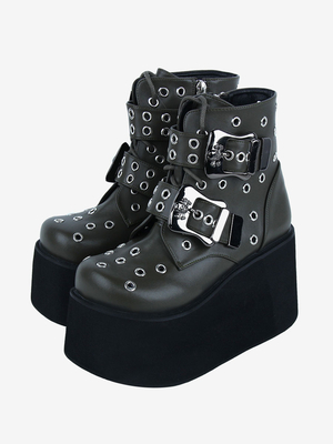 Stivali Lolita gotici Occhielli metallici in pelle PU Punta rotonda Calzature Lolita verde cacciatore & Vestiti Lolita > Scarpe Lolita