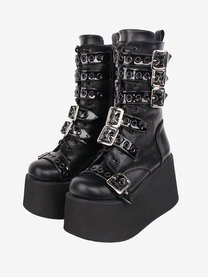 Stivali Lolita gotici Pelle PU Occhielli bicolore Punta tonda Calzature Lolita nere & Vestiti Lolita > Scarpe Lolita