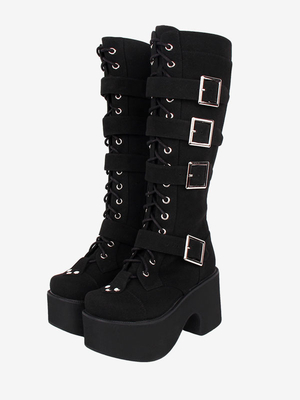 Stivali Lolita Gotici Pelle PU Punta Tonda Calzature Lolita Nere