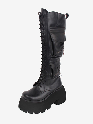 Stivali Lolita gotici Pelle PU Punta tonda Calzature Lolita nere & Vestiti Lolita > Scarpe Lolita