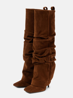 Stivali morbidi in pelle scamosciata Stivali a metà polpaccio con tacco grosso e punta a punta & Scarpe > Scarpe Donna > Stivali > Stivali per polpacci ...