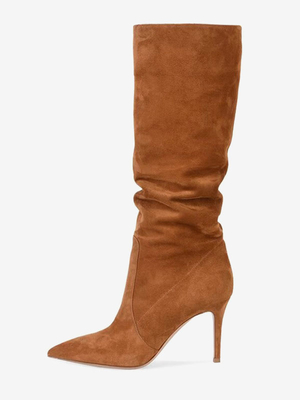 Stivali morbidi in pelle scamosciata Stivali a punta marrone con tacco a spillo a metà polpaccio & Scarpe > Scarpe Donna > Stivali > Stivali per polpacci