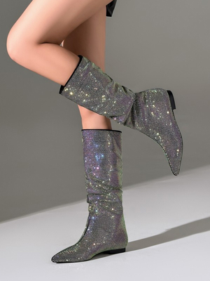 Stivali neri a metà polpaccio da donna con strass punta affilata scarpe basse da festa & Scarpe > Scarpe Donna > Stivali > Stivali per polpacci