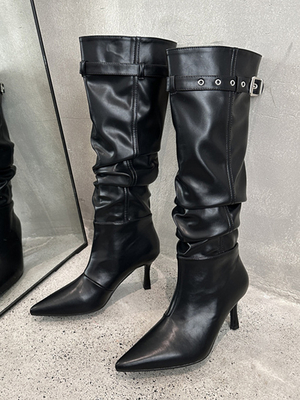 Tacco A Spillo Con Fibbia. Stivali Con Tacco Alto Slouch