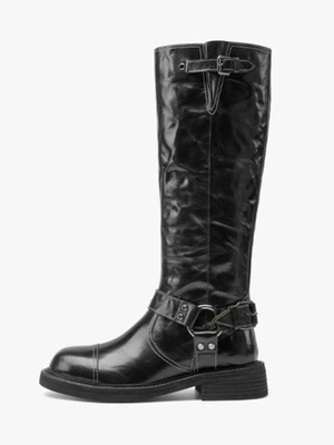 Stivali neri al ginocchio per donna con fibbia e dettagli piatti & Scarpe > Scarpe Donna > Stivali > Stivali al ginocchio