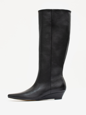 Stivali Neri Alti Fino Al Ginocchio Con Punta Quadrata E Zeppa Per Le