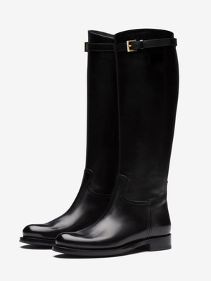 Stivali Neri Alti Fino Al Ginocchio Con Punta Rotonda Piatta E Fibbia
