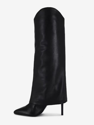 Stivali neri alti fino al ginocchio con tacco alto e punta affilata stivaletti pieghevoli per donna & Scarpe > Scarpe Donna > Stivali > Stivali al ginocchio