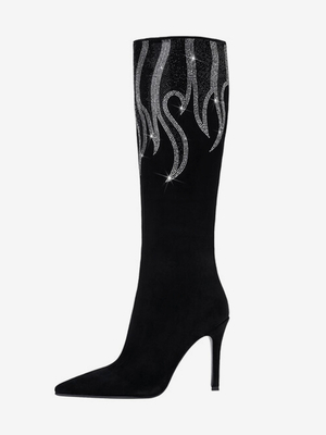 Stivali neri alti fino al ginocchio da donna con punta a punta e strass stivali da festa con tacco alto & Scarpe > Scarpe Donna > Stivali > Stivali al ginocchio