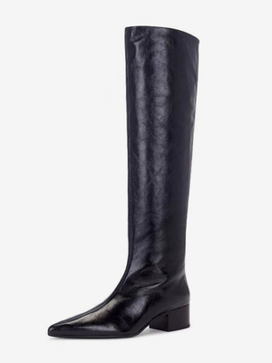 Stivali neri alti fino al ginocchio da donna con punta a punta e tacco spesso lunghezza al ginocchio & Scarpe > Scarpe Donna > Stivali > Stivali al ginocchio
