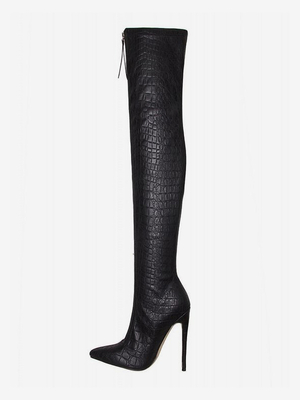 Stivali neri alti fino alla coscia con punta affilata cerniera motivo pietra tacco alto sopra il ginocchio & Scarpe > Scarpe per Occasioni > Scarpe Sexy > Stivali sexy & Stivali balletto