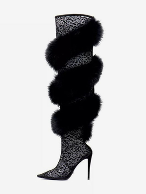 Stivali neri sopra il ginocchio con dettagli in pelliccia sintetica e tacco alto stivali sexy sopra il ginocchio & Scarpe > Scarpe Donna > Stivali > Stivali sopra il Ginocchio