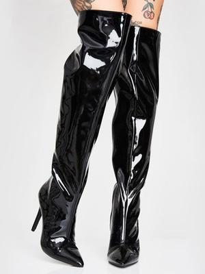Stivali neri sopra il ginocchio Stivali sexy in pelle PU con punta affilata sopra il ginocchio & Scarpe > Scarpe per Occasioni > Scarpe Sexy > Stivali sexy & Stivali balletto