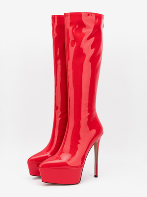 Stivali sexy argento con plateau e punta a punta stivali a metà polpaccio con tacco a spillo per donna & Scarpe > Scarpe Donna > Stivali > Stivali per polpacci