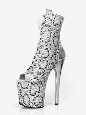 Stivali sexy con tacco alto punta aperta allacciati stampa serpente tacco a spillo stivali alti fino alla coscia stivali sopra il ginocchio & Scarpe > Scarpe per Occasioni > Scarpe Sexy > Stivali sexy & Stivali balletto