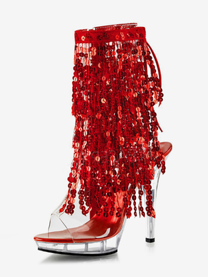 Stivali sexy con tacco alto punta aperta lacci paillettes tacco a spillo da pole dance stivali rossi alti fino alla coscia stivali sopra il ginocchio & Scarpe > Scarpe per Occasioni > Scarpe Sexy > Stivali sexy & Stivali balletto