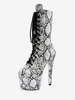 Stivali Sexy Con Tacco Alto Punta Tonda Cerniera Stampa Serpente Tacco
