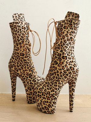 Stivali sexy con tacco alto Stivali leopardati con punta tonda con cerniera e fibbia & Scarpe > Scarpe per Occasioni > Scarpe Sexy > Stivali sexy & Stivali balletto
