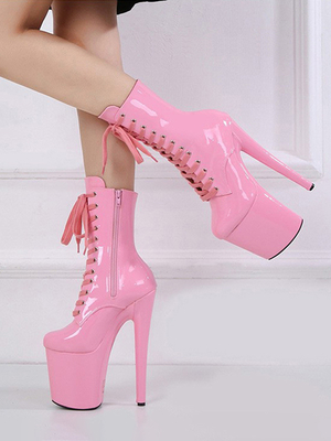 Stivali sexy rosa con plateau e punta rotonda con lacci scarpe da pole dance & Scarpe > Scarpe per Occasioni > Scarpe Sexy > Stivali sexy & Stivali balletto