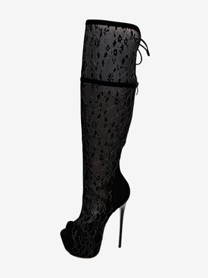 Stivali sopra il ginocchio con plateau punta aperta tacco alto e pizzo nero & Scarpe > Scarpe Donna > Stivali > Sandali stivali