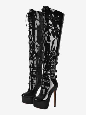 Stivali sopra il ginocchio con plateau sexy Stivali alti alla coscia con tacco a spillo e dettagli con fibbia & Scarpe > Scarpe per Occasioni > Scarpe Sexy > Stivali sexy & Stivali balletto