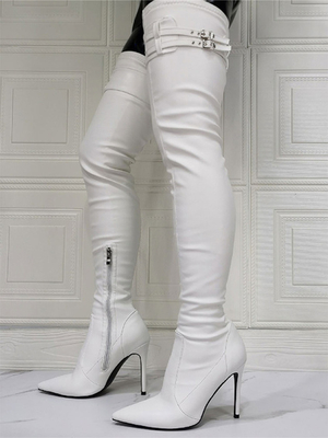 Stivali sopra il ginocchio da donna Stivali alti alla coscia bianchi in pelle PU con tacco a spillo & Scarpe > Scarpe Donna > Stivali > Stivali sopra il Ginocchio ...