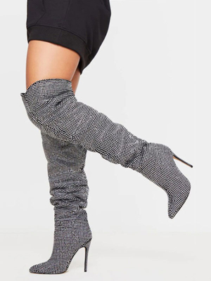 Stivali sopra il ginocchio da donna Stivali alti alla coscia con punta elastica e tacco grosso & Scarpe > Scarpe Donna > Stivali > Stivali sopra il Ginocchio ...